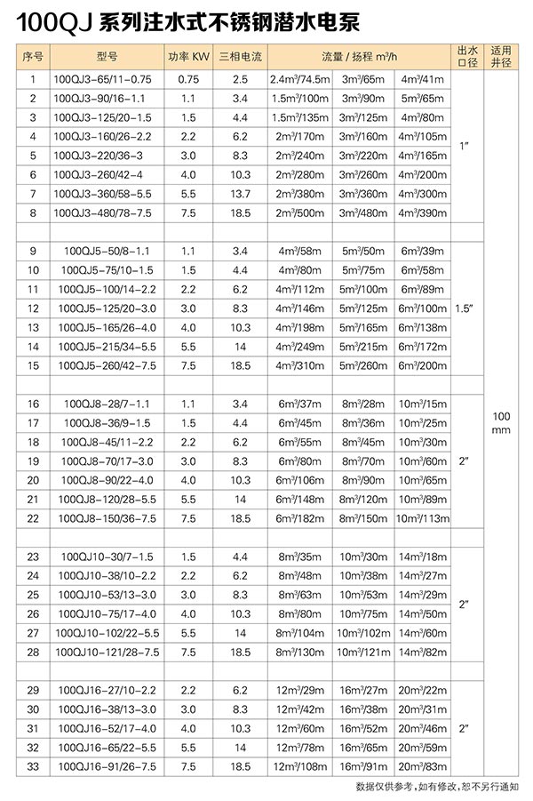 QJ系列注水式不銹鋼電泵