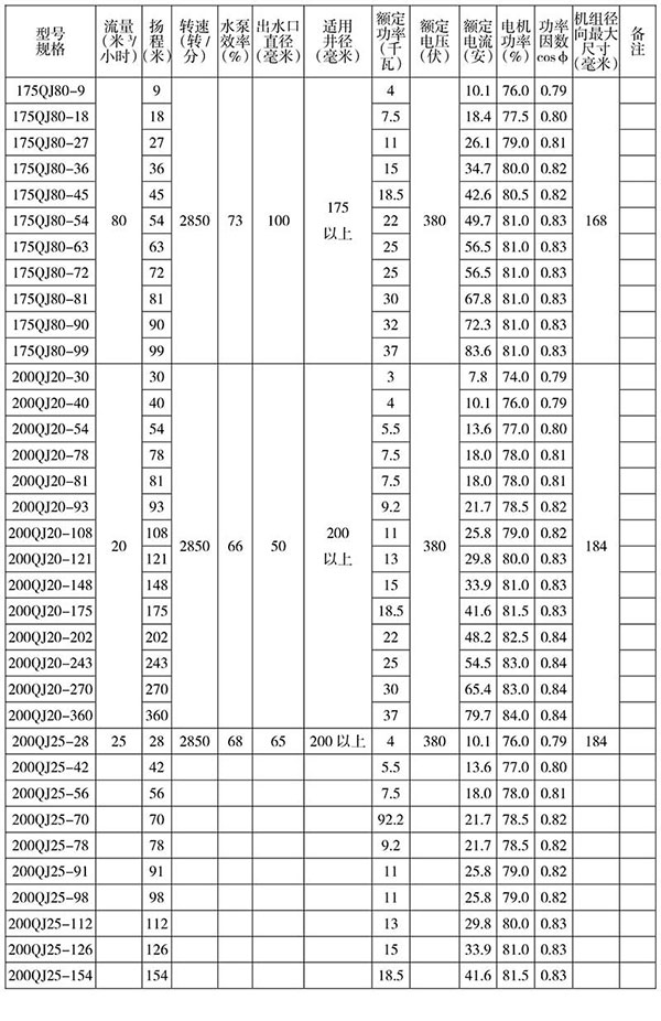 ( 1 ) 水溫 a:QJ 型 ≤20℃ b: QJ 型 ≤20℃